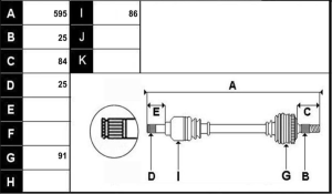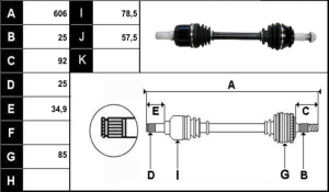 Observações: Lado roda 25 estrias e Lado caixa 25 -