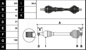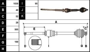 Observações: Lado caixa rolamento de apoio 440mm, 27 estrias -