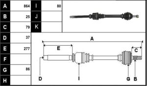 Observações: Lado caixa rolamento de apoio, Lado roda 25 estrias, Lado caixa estrias interior 37 -