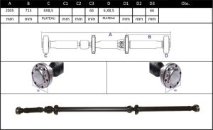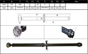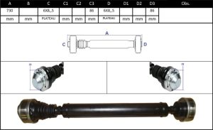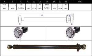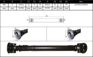 Observações: Comprimento Total 730mm, Apoio 0, Central Dianteira -