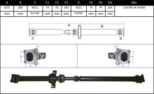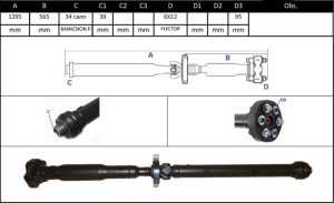 Observações: Comprimento Total 1295mm, Apoio 1, Central Traseira -