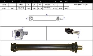 Observações: Comprimento Total 1375mm, Apoio 0, Central Traseira