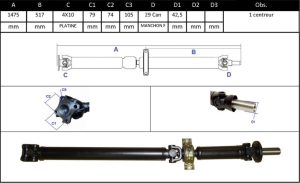 Observações: Comprimento Total 1475mm, Apoio 1, Central Traseira -