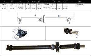 Observações: Comprimento Total 1470mm, Apoio 1, Central Traseira -
