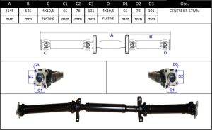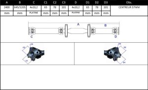 Observações: Comprimento Total 2400mm, Apoio 2, Central Traseira -