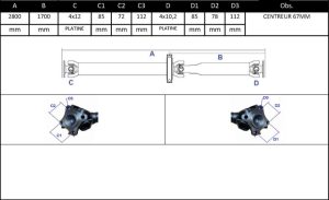 Observações: Comprimento Total 2800mm, Apoio 1, Central Traseira -