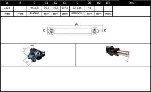 Observações: Comprimento Total 1525mm, Apoio 0, Central Traseira -