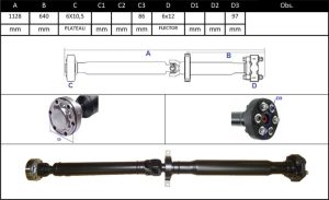 Observações: Comprimento Total 1280mm, Apoio 1, Central Traseira -