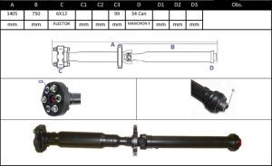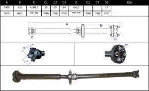 Observações: Comprimento Total 1405mm, Apoio 1, Central Traseira -