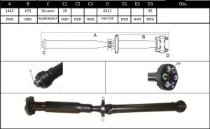 Observações: Comprimento Total 1445mm, Apoio 1, Central Traseira -