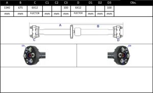 Observações: Comprimento Total 1340mm, Apoio 1, Central Traseira -