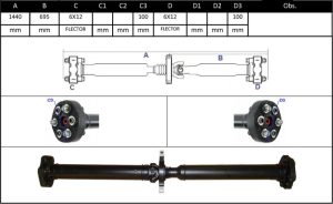 Observações: Comprimento Total 1440mm, Apoio 1, Central Traseira -