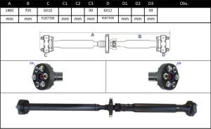 Observações: Comprimento Total 1415mm, Apoio 1, Central Traseira -