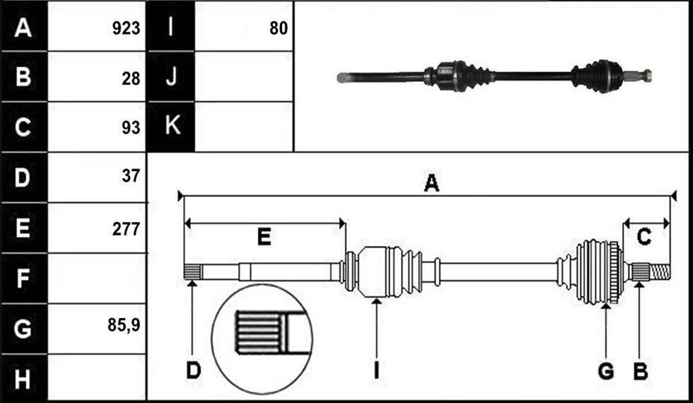 Observações: Lado caixa rolamento de apoio 277mm, 37 estrias