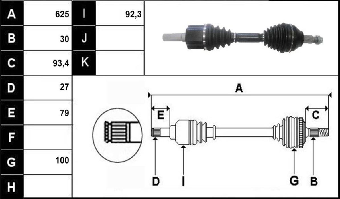 Observações: Lado roda 30 estrias, Lado caixa 27 estrias
