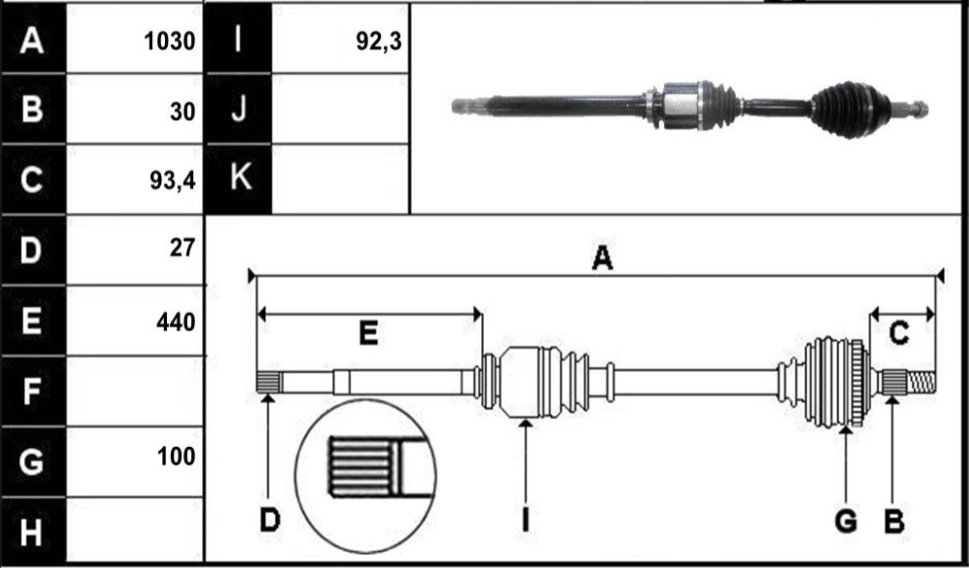 Observações: Lado caixa rolamento de apoio 440mm, 27 estrias