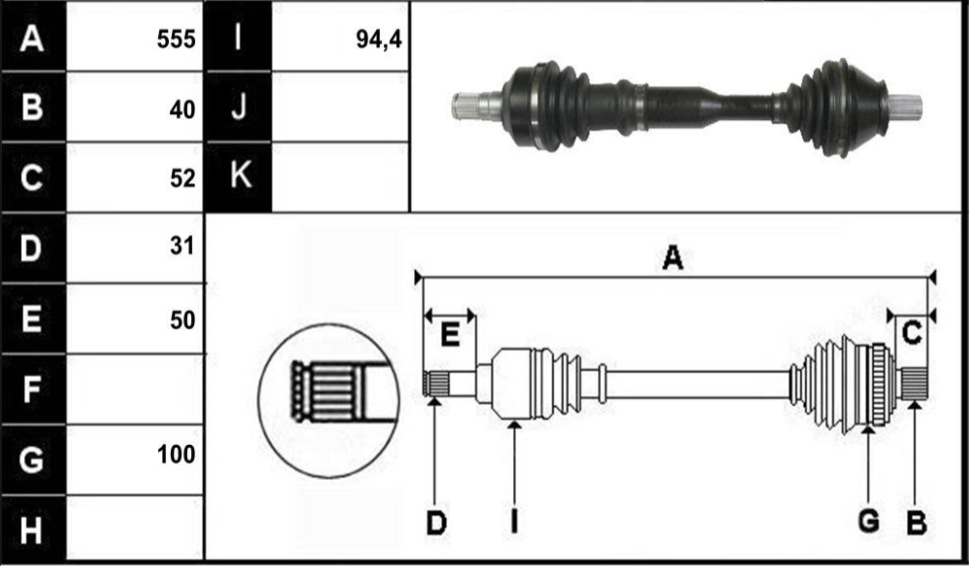 Observações: Lado roda 40 estrias, Lado caixa 31 estrias