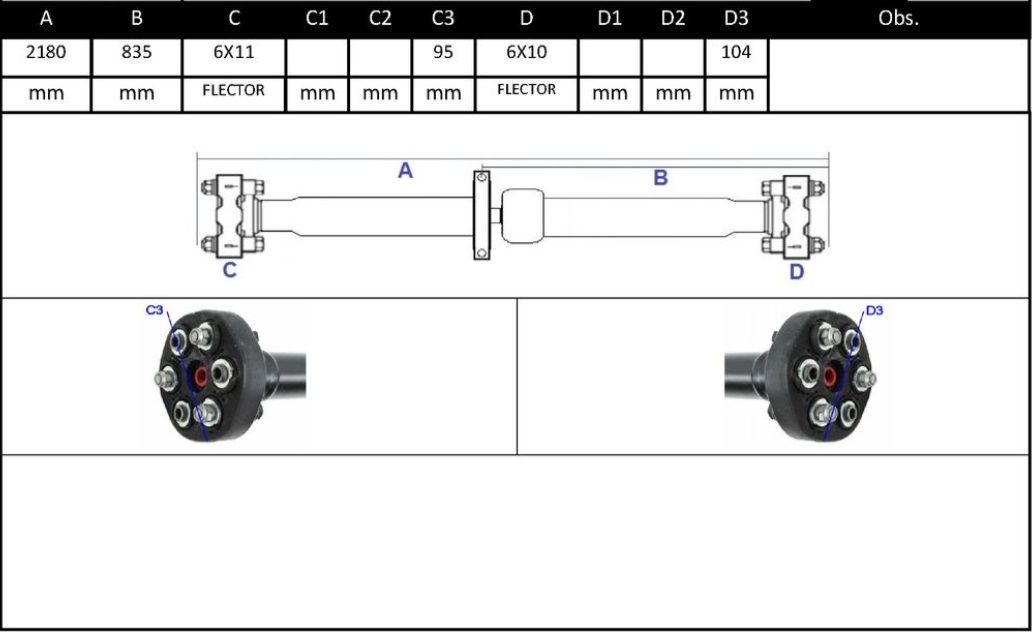 Observações: Comprimento Total 2180mm, Apoio 1, Central Traseira