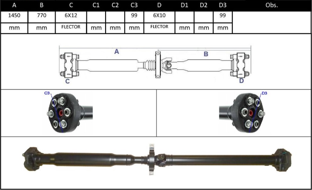 Observações: Comprimento Total 1450mm, Apoio 1, Central Traseira