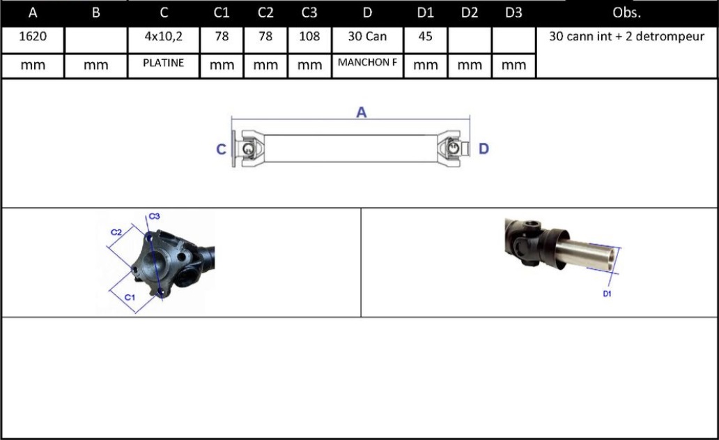 Observações: Comprimento Total 1620mm, Apoio 0, Central Traseira