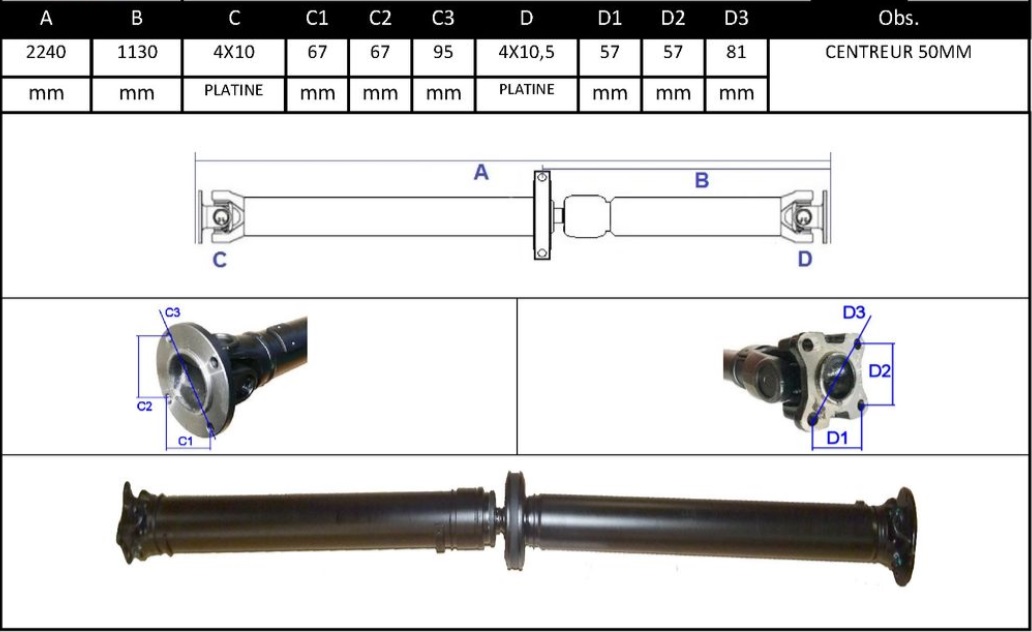 Observações: Comprimento Total 2240mm, Apoio 1, Central Traseira
