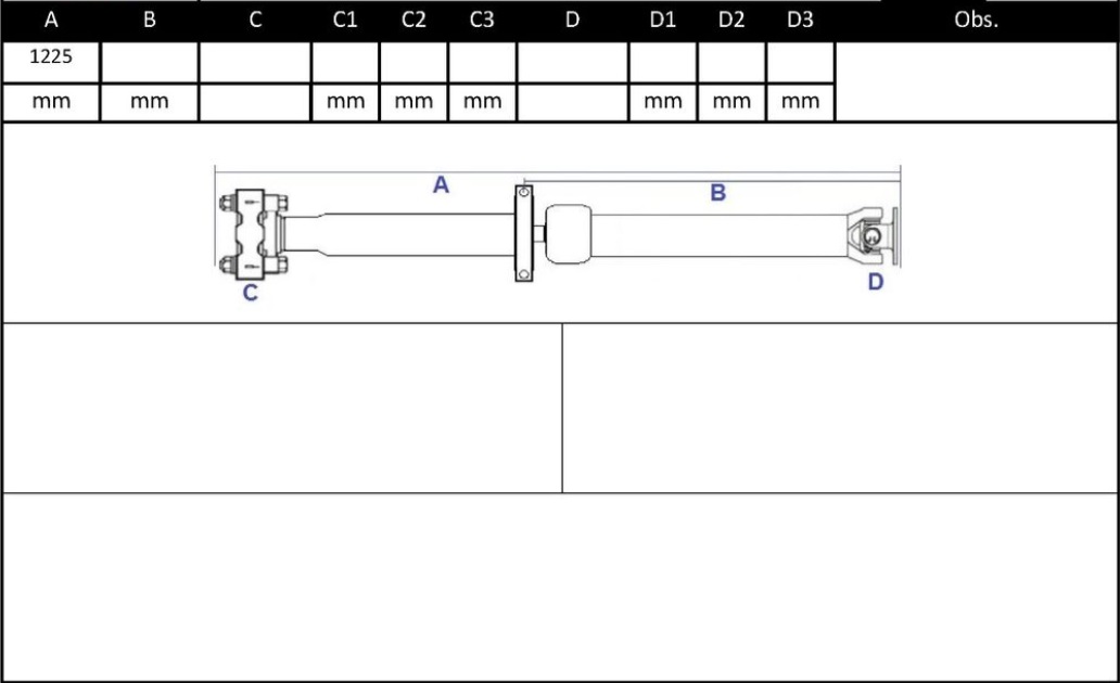 Observações: Comprimento Total 1225mm, Apoio 1, Central Traseira